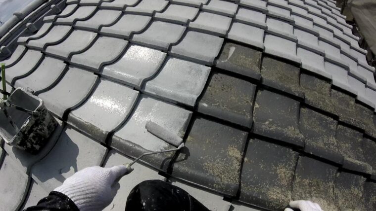 セメント瓦の下塗り(凹凸対策にベスコロで)