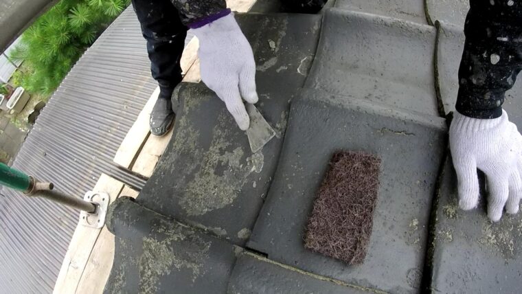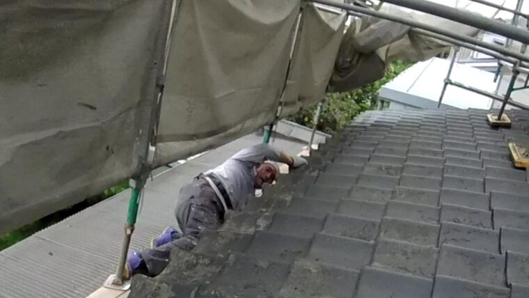 洗浄後、屋根の塗装をさせて頂きますが、今回の屋根は痛みがかなり出ているので下処理を入念にしないと剥離の原因になりかねないので慎重に丁寧に下処理をしていきます。