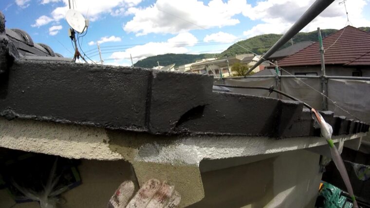 ⇧ここは古いアンテナ金具が錆びてたので撤去後にモルタル補修をさせて頂きました。