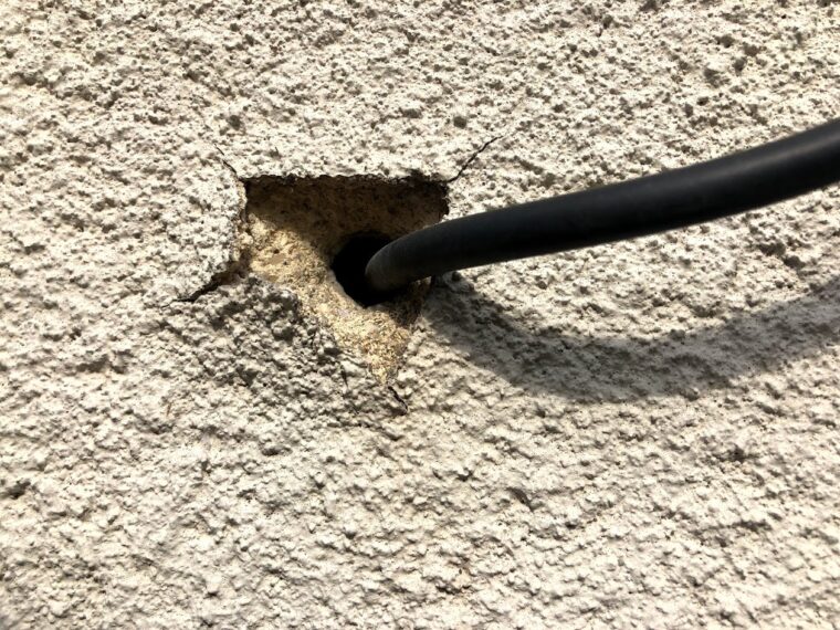 今回は外壁に大きな穴や欠損箇所があるのでモルタル補修をさせて頂きました。
