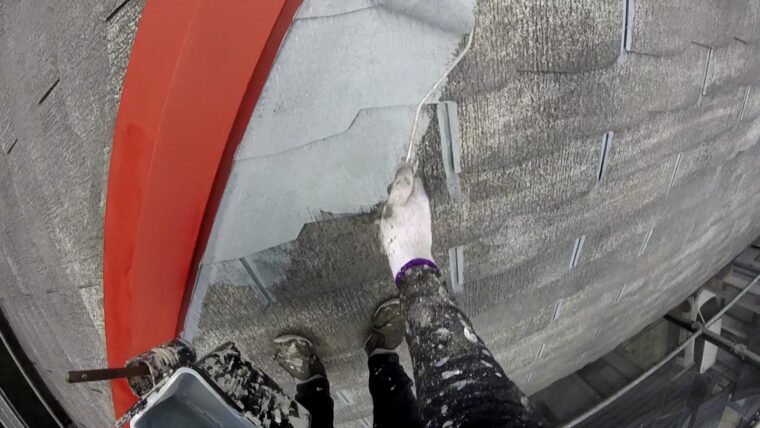 本日は先日屋根・外壁の洗浄が終わったので、洗浄だけでは取り切れない箇所の研磨洗浄と下塗りをしていきます。
