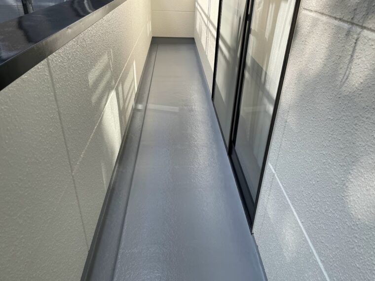 本日はベランダの床のFRP防水トップコートの施工をさせて頂きました。
