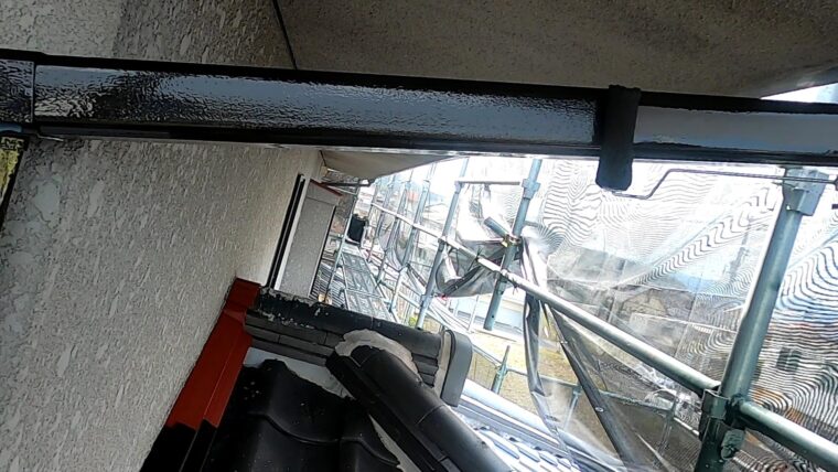 ⇧今回はベランダの手摺部分も塗装をしますが、この部分は日差しが強く手で触る箇所なのでフッ素系の塗料で仕上げさせていただきました。