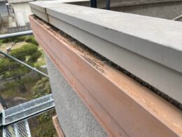 ⇧下側の帯部分もかなり痛みが出ていました、南面なので特に痛みが目立ちました。