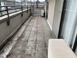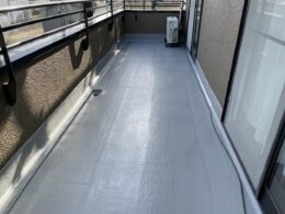 ⇧ベランダ床はFRPでしたのでトップコートを塗装させて頂きました。