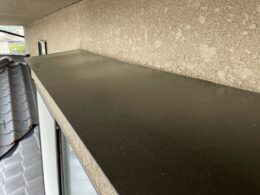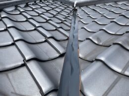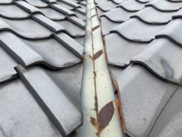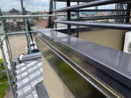 ⇧大屋根・下屋根共に谷部分が錆びが出ていましたので屋根なので対候性のいい無機系の塗料で仕上げました。