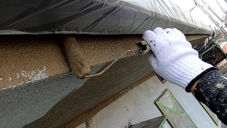 今回の外壁は吹付カットローラー仕上げなのと初めての塗り替えなので塗膜強化のために下塗りを2回入れさせて頂きます。