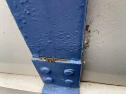 外壁や鉄骨などにもサビや剥離がありましたのでご相談の上屋根と外壁を両方塗装することになりました。