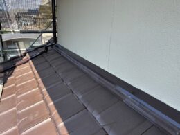 ⇧屋根は釉薬の平板瓦ですが水切り部分は鉄部で色あせが進んでいたので錆止めを入れて塗装させて頂きました。