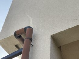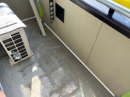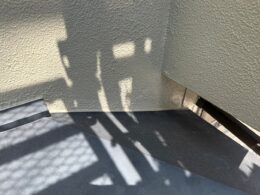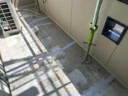 外壁の状態はチョーキングや亀裂が目立ちました、ベランダの床も防水処理がされていなかったので防水をご提案させて頂きましたが予算的な事などもあり最低限の防水処理で対応させて頂きました。