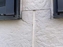 ⇧ベランダからの影響で亀裂が入っていましたがしっかりコーキング補修をして塗装させて頂きました。