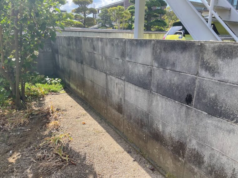 ⇩フェンスを取り付ける前にブロック塀にモルタルできれいにさせて頂きました。