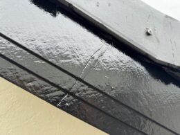 ⇧破風にも亀裂がありましたのでコーキング処理をしっかりしてから下塗りを入れて塗膜をしっかり付けさせて頂きました。