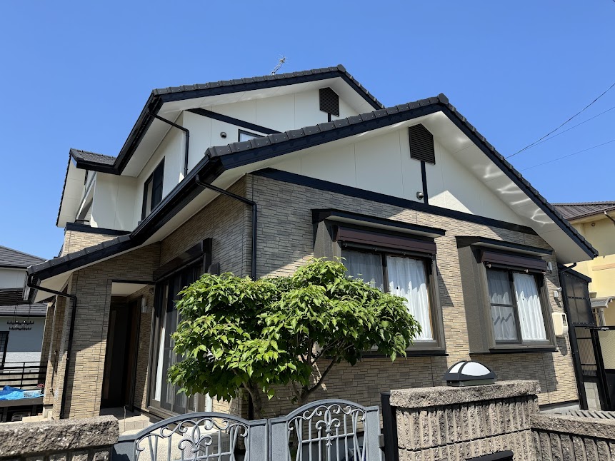 他社の塗装見積もりでは1階部分も一色塗りでご提案されていたようでしたがせっかくの模様がもったいないため弊社がクリア塗装をご提案させて頂きご縁を頂きました。