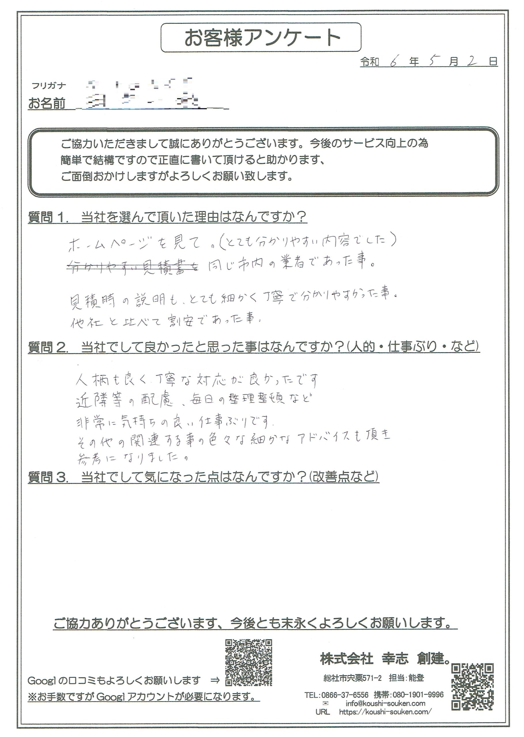 見積時の説明もとても細かく丁寧で分かりやすかったこと。