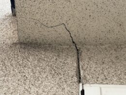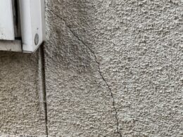 外壁にも多くの亀裂がありましたのでコーキング処理もしっかりさせて頂きました。