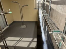 ⇧ベランダの笠木も色あせがあったのと錆が出るといけないのでさび止め後に塗装させて頂きました。