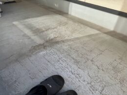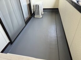 ⇧ベランダ床はFRP製ですが亀裂が多かったのでウレタン系のトップを持ってきました。