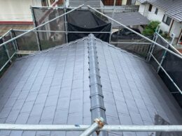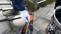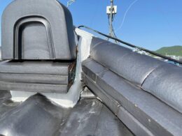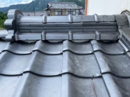 岡山県総社市K様邸で外壁塗装をさせて頂いております。 屋根の瓦の棟部分や三日月型の箇所も年数が経つと雨が瓦内部に入って漆...