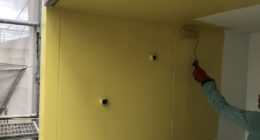岡山県総社市Y様邸の外壁塗装(下塗り・中塗り作業)