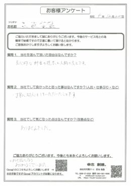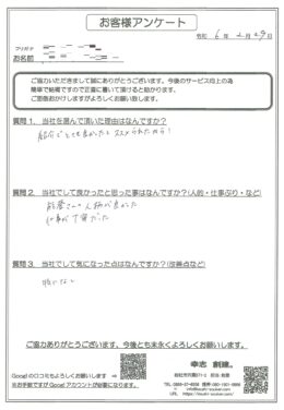 岡山県岡山市 K様 1.当社を選んで頂いた理由はなんですか? ・良心的な料金の提示と人柄の良さです。 &n...