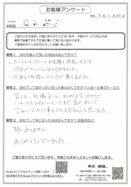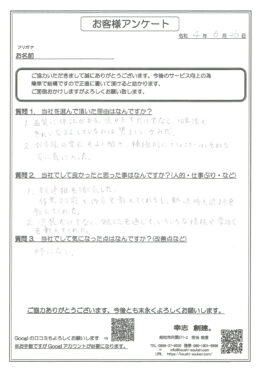 お客様から「いい所」「悪い所」全てを公開させて頂いております。