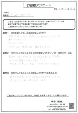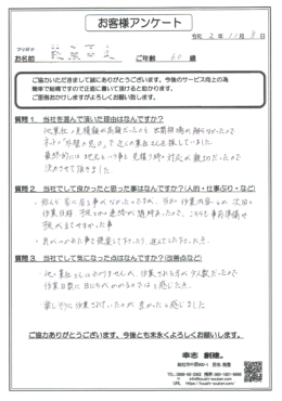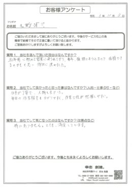 仕事が丁寧で|岡山県倉敷市 Y様の声