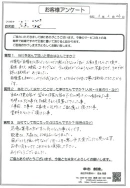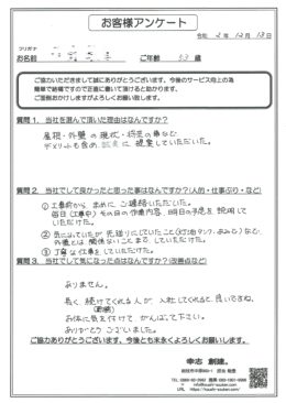 細かい部分まで丁寧に|岡山県総社市 M様の声