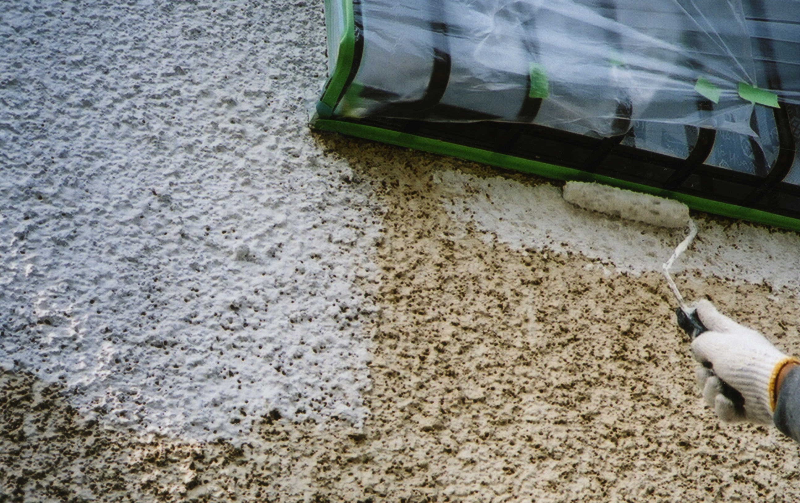ここの作業が何よりも大切で工程の中で一番時間をかける作業です、下地の処理によって塗料の耐久を大きく伸ばすことが出来ます。高圧洗浄で取れなかったヨゴレはここで皮スキやヤスリなどで撤去します。コーキングの打替え・打ち増しが必要な場合はここでしていきます。塗装しない箇所に養生をしていきます。(窓・サッシ・など)