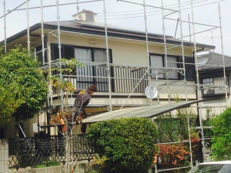 外壁塗装の時、ご近所様に一番ご迷惑をおかけする作業です。大きなトラックが道を塞いだり、足場を組立てる時に大きな音がします。半日~1日で組みあがります。 ※この前日までに家の周辺の物で汚れるといけないものは片づけをお願いします。(塗料が飛散しないように、細心の注意で養生をしますが散る場合があるためです)※この時テラスなどのカーポートや波板を外す場合がございます。
